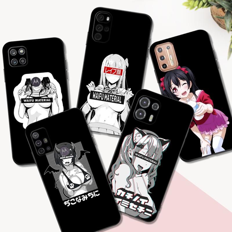 Schwarze TPU-Hülle für Motorola Edge 20 Lite Pro 2021 S Moto E20 E30 E40 E7 4G G 5G Plus Waifu Girl Anime