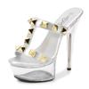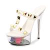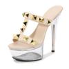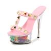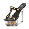 Damen Plateau Sandalen Goldnieten Sexy Transparente Plateau Sandalen Kristallblumen Sandalen LFD-190-38