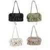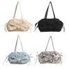 Women Fashion Shoulder Bag Lightweigt Pleated Yoga Bag Large Capacity Ruched Travel Bag Solid Color Canvas Shoulder Purse
