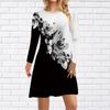 Damen Freizeitkleid Herbst Schöne weiße geschwungene Blumen Print Kleider für Frauen O-Ausschnitt Kurzarm Kleid Plus Size