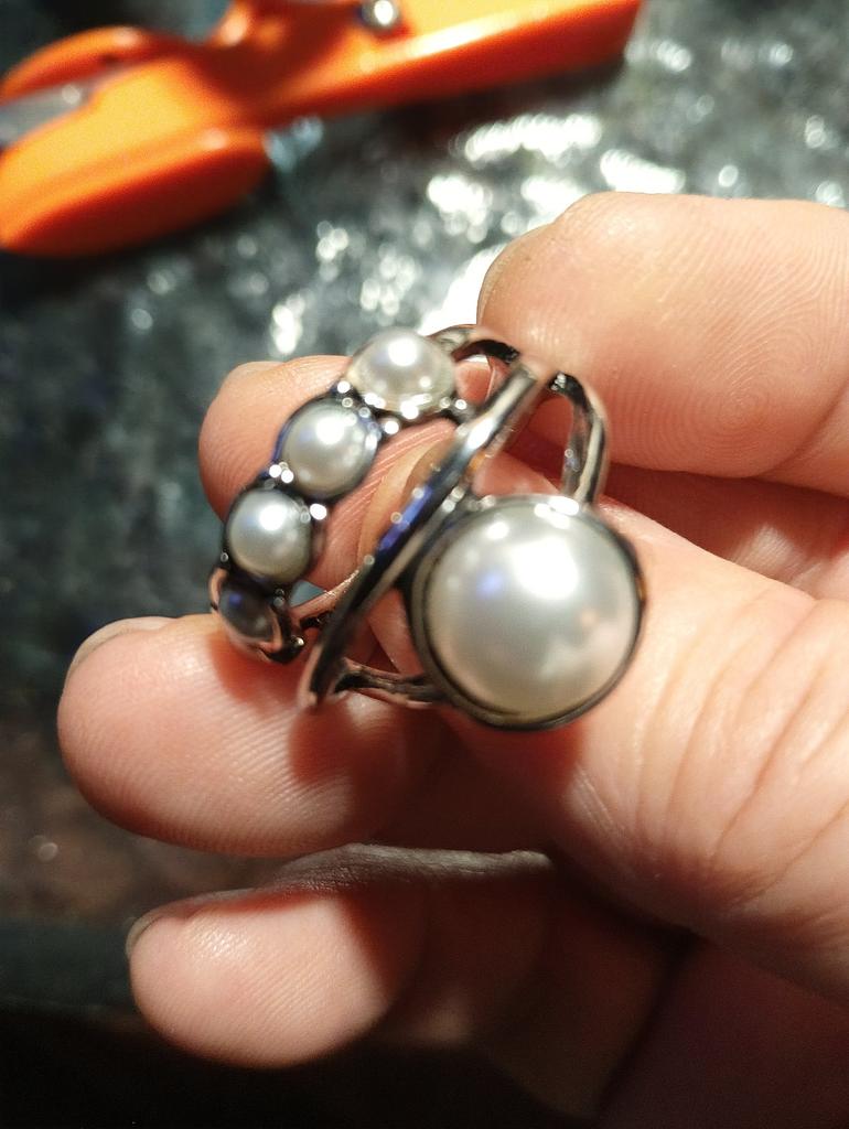 Wie oft habe ich mir geschworen, mich bei professionellen Fotos, insbesondere von Ringen, nicht von wunderschönen Photoshop-Bildern täuschen zu lassen?. Ich war nicht zu faul, ich habe zur Verdeutlichung und zum Vergleich eine Collage erstellt. Anstelle einer Barockperle ein Stück glatter Kunststoff, silberfarbenes Metall, aber keine Raffinesse wie auf dem professionellen Foto, der gleiche Vintage-Charakter wie in der Beschreibung angegeben, ein einfacher Ring... Zusammenfassung – wenn Sie trotzdem bestellen, erwarten Sie nicht die Wirkung – Wow! wunderschön! - schöner kleiner Ring und das wars...