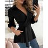 VEZFAA Damenmode, lässig, Frühling und Herbst, langärmelig, Blusen und Hemden mit Polokragen