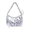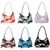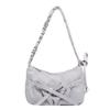 Women Chic Tote Handbag with Ruched Drawstring Strap Bow Simple Crossbody Bag Solid Color Casual Underarm Bag Ladies Outdoor Bag