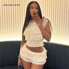 Süße unregelmäßige Falten elegante schicke Sets Jacquard Spitze Stufenrock Crop Top passende Damen Kleidung ästhetische süße Vintage Y2k Sommer Outfits
