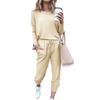 Werten Sie Ihre Freizeitgarderobe mit diesem Damenanzug auf, der ein schlichtes, einfarbiges Design aufweist. Das Set besteht aus einem langärmeligen Oberteil und einer Leggings-Hose, beide für Komfort und Stil gefertigt. Der elastische Kordelzug in der Taille sorgt für eine perfekte Passform für die meisten Körpertypen.