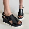 2024 Sommer Modische Sandalen mit römischem Slope-Heel, große Größe, Einheitsgröße, Schnallenriemen, Pine Cake Slope-Heel, Strandsandalen mit dicker Sohle