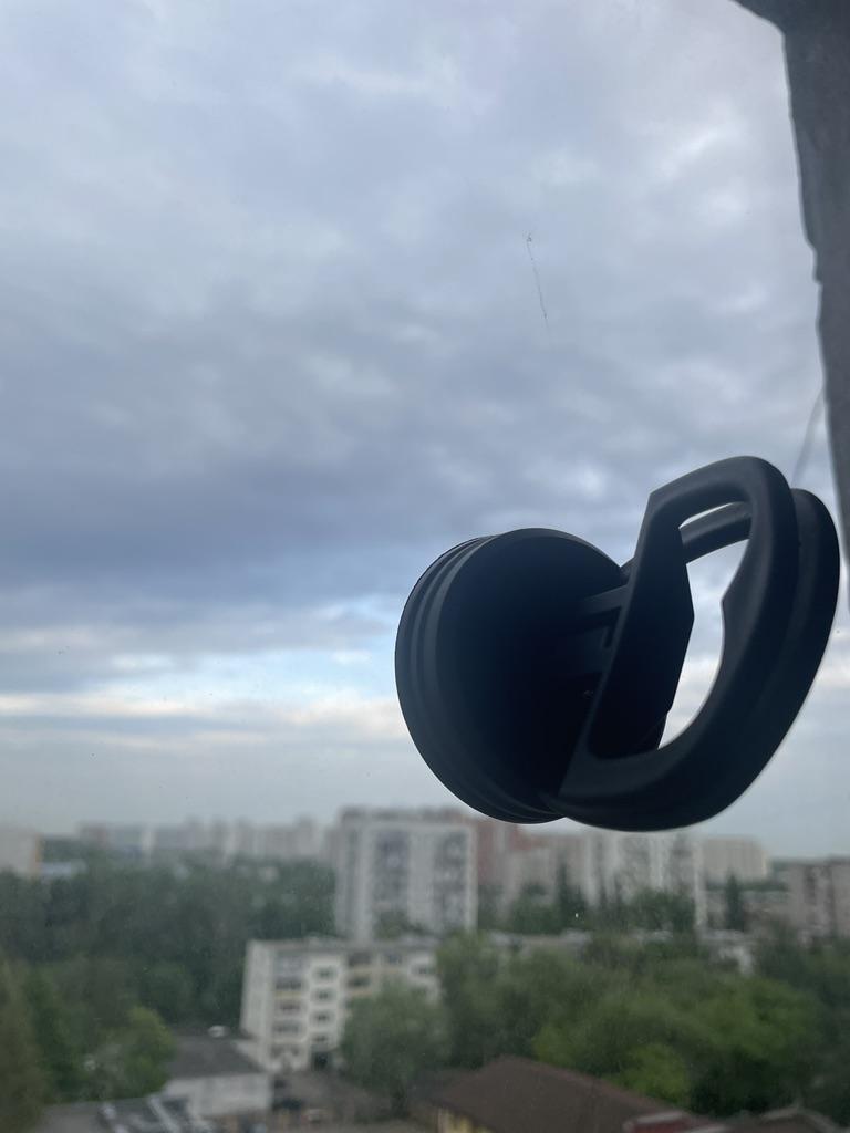 Sehr klein, noch nicht in der Praxis ausprobiert, aber haftet gut am Glas