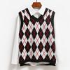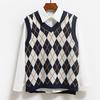 Karierter ärmelloser Pullover, lockerer Strickpullover im Studenten-College-Stil, Tanktops für Damen
