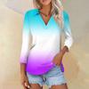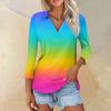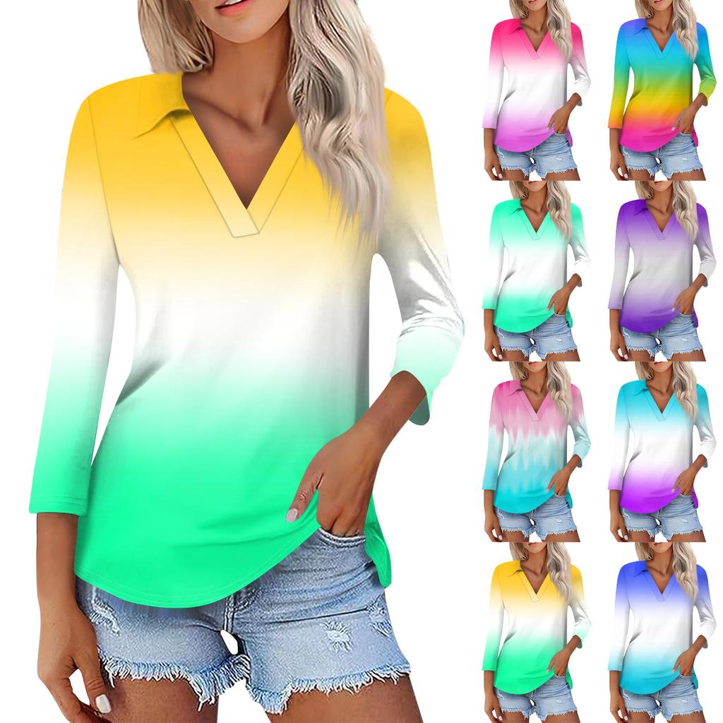 Damen Sommermode Casual Print V-Ausschnitt Dreiviertelärmel Shirt Top