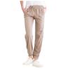 Frauen Casual Baumwolle und Leinen solide Kordelzug elastische Taille lange gerade Hosen