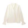 Hemden Damen Frühling All-Match V-Ausschnitt Stilvolles Koreanisches Design Retro Bequem Elegant Lässig Trendig Rüschen Neu Schick Sanft