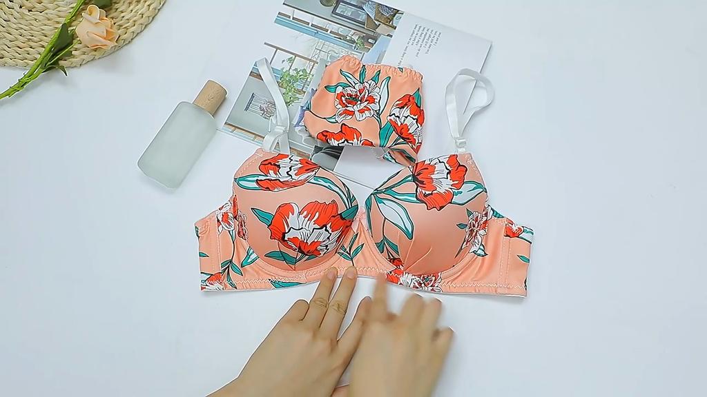 Damen-Dessous-Set mit Bügel, atmungsaktives Büstenhalter- und Slip-Set, bedrucktes nahtloses Unterwäsche-Set für Damen, gerafftes Push-Up-BH-Set