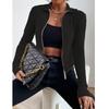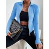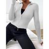 Doppel-reißverschluss Gerippte Strickjacke frauen Crop Cardigan Engen Sexy Revers Lange ärmeln Herbst Winter Pullover Top