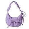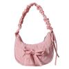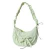 Women Chic Tote Handbag with Ruched Drawstring Strap Bow Simple Crossbody Bag Solid Color Casual Underarm Bag Ladies Outdoor Bag