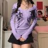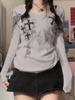 Mode Grafik Kreuz Flügel Druck Langarm Frauen T-shirt Y2k Top Harajuku T 2000s Ästhetischen Punk Stil Kleidung Streetwear