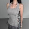Fishbone Thread Safari-Stil-Weste, unregelmäßiges Hemd mit Hakenboden für Frauen, quadratischer Ausschnitt, sexy, ärmellose Tops