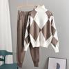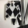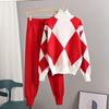 Damen Frühling und Herbst Color Clash Set Karierter Langarmpullover + Jogginghose Zweiteiliges Set