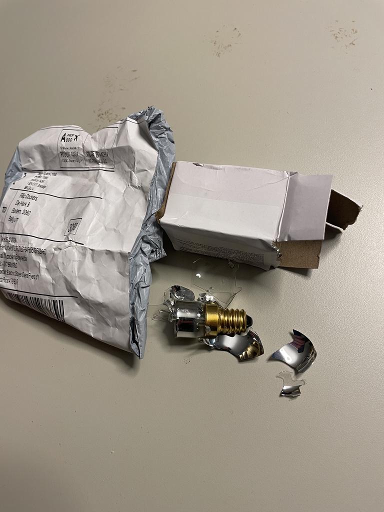 Artikel völlig kaputt, was nicht überraschend ist. Eine kleine zerbrechliche Glühbirne, die in einem kleinen Karton ohne Polstermaterial verpackt ist, übersteht den Transport niemals.