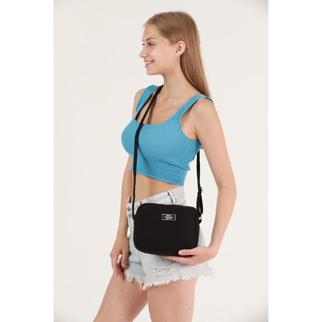 Black U35 Canvas Fabric Women's Shoulder Bag With Single Zipper Compartment And Adjustable Strap U:14 E:20