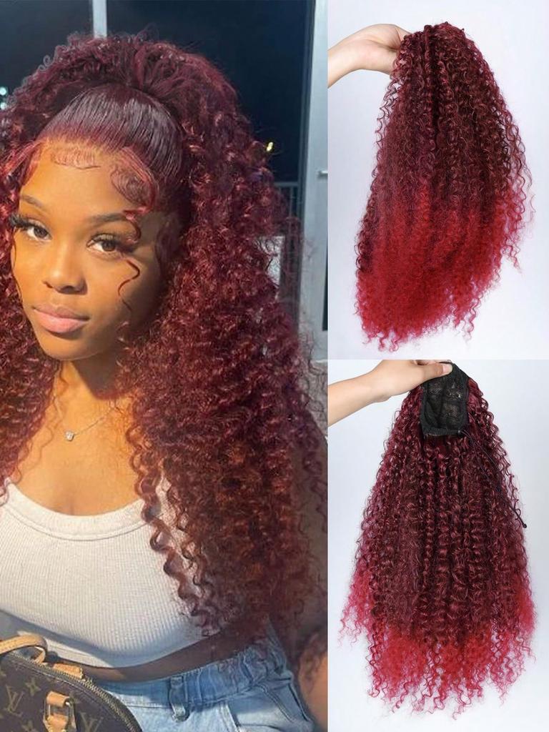 Synthetische Perücken, 50,8 cm langer Pferdeschwanz mit Kordelzug, tief gelockt, hitzebeständig, Pferdeschwanzverlängerung im Afro-Stil, verworrene lockige Haarteile für Frauen