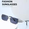 Quadratische Sonnenbrille aus Metall, randlos, klein, modisch, UV400, für Radfahren, Autofahren, Reisen