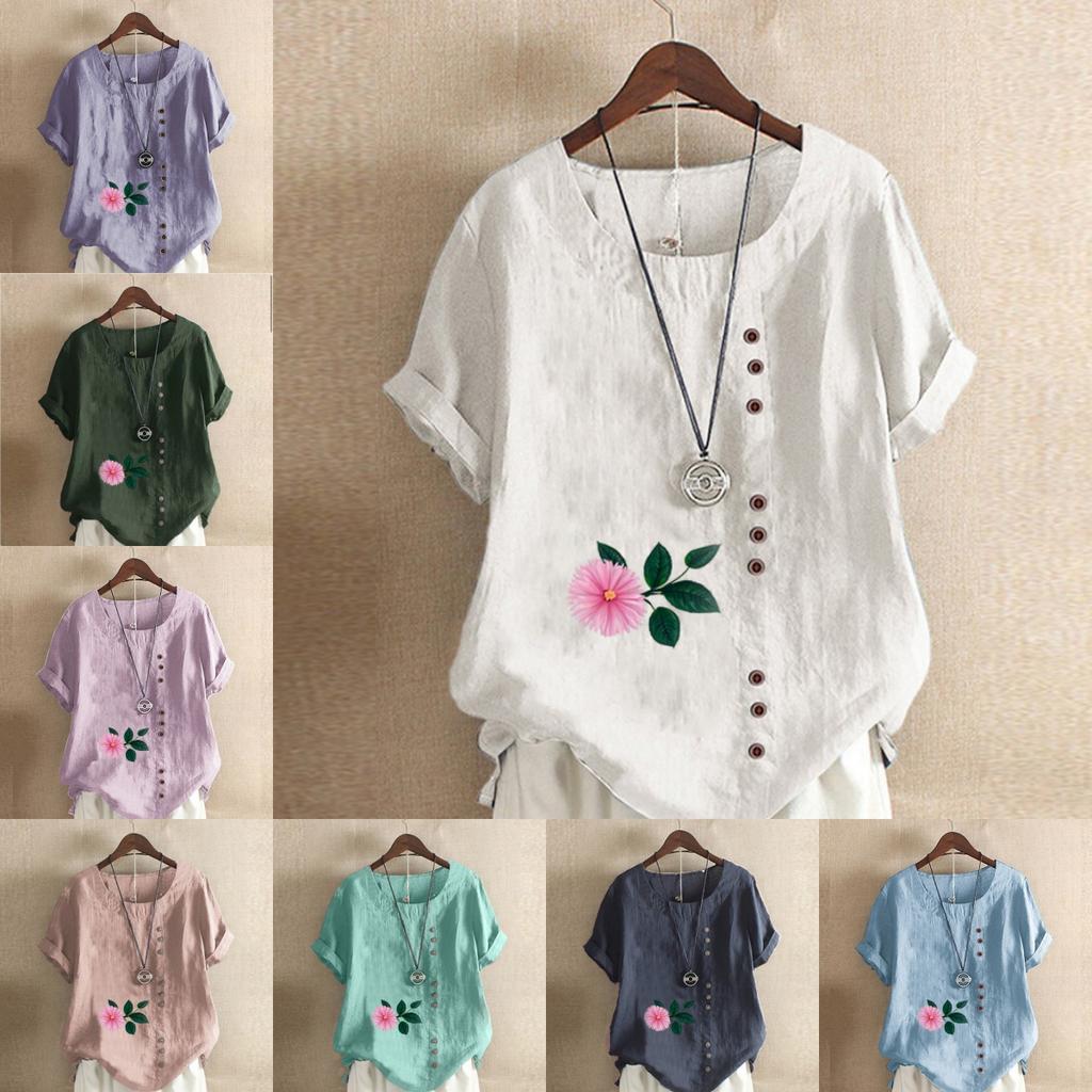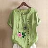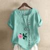 Damen T-Shirt mit Rundhalsausschnitt, kurzärmelig, Blumenmuster, Leinenhemd, Sommer, lässig, Übergröße
