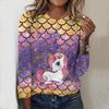 Tops For Women 3D Cute Mermaid Print Round Neck Long Sleeve T-shirt Fall Casual Slim Pullover Women's Long Sleeve Top