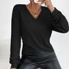 IHUASU Women's Autumn and Winter Niche V-Neck Crossover Pullover Long Sleeve T-Shirt