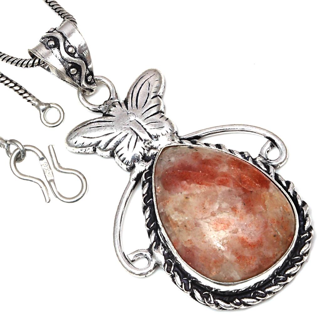 Anhänger Sonnenstein Edelstein Handgefertigt Geschenk Für Sie Ethnisch Silberschmuck 2,25"