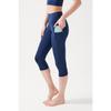 Women's Black High Waist Collecting Double Pocket Below Knee Capri Leggings Capri