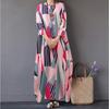Frühling und Herbst Baumwollleinen Übergrößenkleid für Damen Bedrucktes Landhausstil Retro Lockere Rundhals Lange Kleider