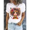 T-Shirt mit Anime-Print für Damen, modischer Kurzarmpullover, Rundhals-T-Shirt, multifunktionale Freizeitkleidung für Damen, Sommerneuheit