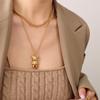 Koreanische neue Halskette Hip-Hop-Schlüsselbeinkette mit Bären-Anhänger, Titanstahl, 18 Karat vergoldet, lichtechter Halskettenschmuck