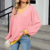 Herbst Winter Pullover & Langarmshirts Damen Kontrastfarbe Rundhalsausschnitt Lockeres Sweatshirt Übergröße
