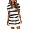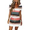 Women Summer Dresses Casual V-Neck Short Sleeve Bandage Stripe Printing Loose Dress