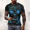 Sommer-T-Shirt mit Rundhalsausschnitt und Farbverlauf für Herren, lockeres Kurzarm-T-Shirt mit Feuerkopf-Print