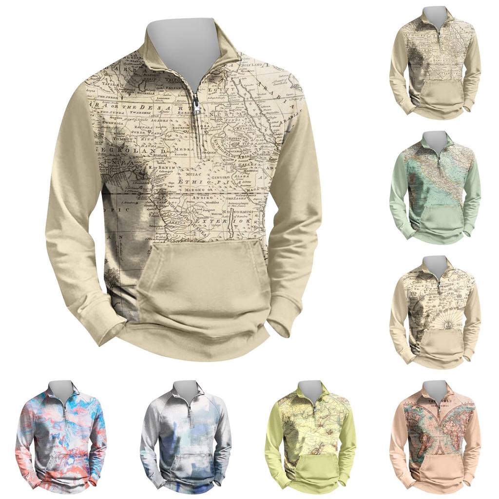 Herren Outdoor Vintage V-Ausschnitt Knopf Langarm Mode Sport T-Shirt