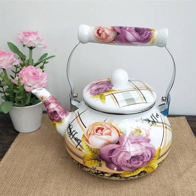 Emaille Teekessel Blumentopf 1,4L Blumenmuster Komfortabler Griff mit Griff Wasser