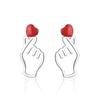 Neue Kreative Rote Liebe Hand 925 Sterlingsilber Schmuck Mode Exquisite Herzförmige Persönlichkeit Geste Ohrstecker Xze021