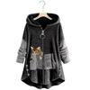 Damen Kapuzenpullover mit Kapuze, warm, Fleece, für den Winter, lässig, Kawaii-Katzen-Print, lockere Sweatshirts, flauschige lange Pullover, Knopfleiste, Kapuzenshirts