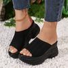 Mode Schwarz Strick Atmungsaktiv Damen Keil Hausschuhe Sommer Neu Dicke Sohle Plateau Sandalen Outdoor Lässig Rutschfeste Pantoletten Mujer