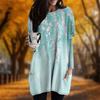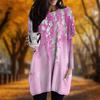Neu Herbstlich Frischer Kleiner Blumenprint Übergröße Kleid Damen O-Ausschnitt Lange Ärmel Lässig Taschenkleider
