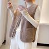 Strickjacke Damen Wollweste Verdicken Mode Frühling Herbst V-Ausschnitt Lose Einsatz Samtwesten Top Ärmelloser Mantel
