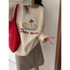 Niedlicher Pullover mit Stickerei Damen Herbst und Winter Bonbonfarbe Rundhals Locker Gestrickter Pullover Top College-Stil