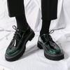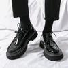 Herren Freizeitschuhe aus Leder im britischen Stil mit runder Spitze für Business und Arbeitskleidung in Schwarz. Perfekt für jugendliche Männer, die glänzende Details zu schätzen wissen.