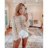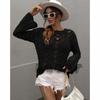2024 Herbst und Winter Neu Gestrickter Europäischer und Amerikanischer Einfarbiger Hakenblumen Aushöhlpullover Rundhals Lockerer Pullover für Damen