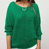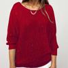 IHUASU Einfarbiges, langärmliges Oberteil mit Rundhalsausschnitt und Schößchen aus goldenem Glitzerstrick für Damen
