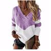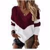 Herbst und Winter Damen Pullover in Übergröße mit V-Ausschnitt, lockerer Pullover, Patchwork, Farbkollisions-Strickpullover