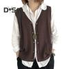 Strickweste für Damen, V-Ausschnitt, ärmellos, einreihig, warme Weste, einfarbig, lockere Passform, gestricktes Tanktop mit Taschen