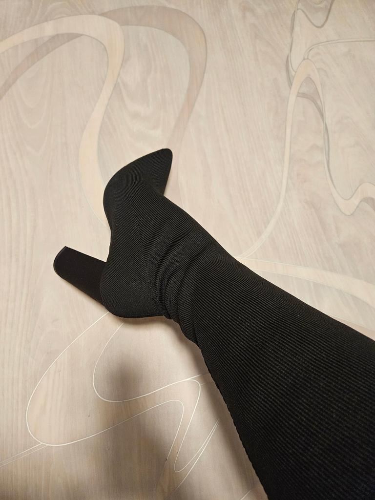 Damenschuhe, Netz-Strickstiefel, hohe Absätze, kniehohe Stiefel, Plateaustiefel, Übergröße 42